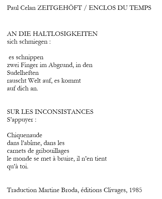 Je m’essaierai, à mes risques et périls, non pas à l’exposé d’une pensée arrêtée, mais à l’exposition d’un trajet pouvant faire apparaître, à l’horizon de son adresse et sur le rideau de fond de scène de son émergence, le dessein/dessin/poème d’une épistémologie de la pas-science.