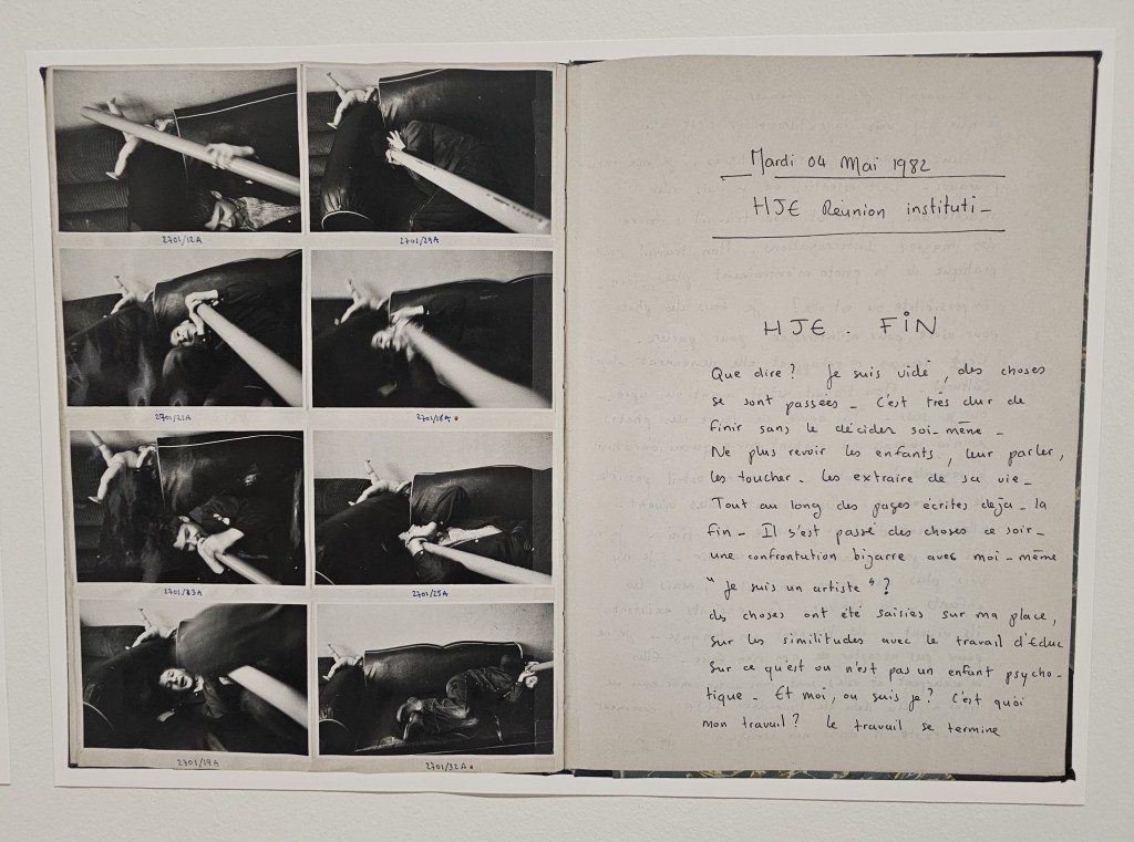 Emilie Bernard : En effet, parfois on peut avoir les commentaires des photographes sur leur travail. Je vous disais que dans la préface du livre San Clemente, Depardon écrit qu’il était obsédé et qu’il ne pouvait pas s’arrêter de faire des photographies jusqu’à ce qu’il n’ait plus peur des « fous ». Marc Pataut, bien sûr dans un contexte et des lieux différents, tient un journal de bord quand il travaille dans cette institution pour enfants psychotiques d’Aubervilliers. Il se questionne sans arrêt sur sa place, sur l’institution qui l’accueille, sur la pertinence ou pas d’y faire des photographies de ces enfants. Il écrit : « Je ne vois pas de malades, je vois des enfants qui tiennent un autre langage que je ne comprends pas ». Ce sont toutes ces démarches différentes que nous voulions rendre tangibles.