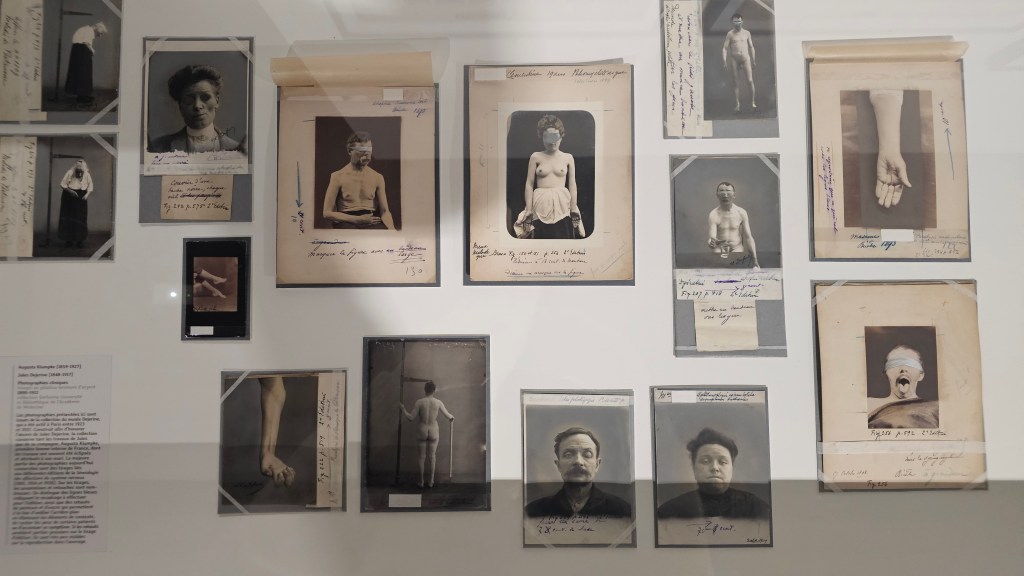 Emilie Bernard : oui, bien sûr. La série qui suit celle de Robert Demachy, c’est une série de 17 images qui sont également dans les collections du musée, également d’un photographe pictorialiste, un élève de Demachy qui s’appelait Charles Lhermitte, et qui ont également été faites à la Salpêtrière, dix ans après le passage de Robert Demachy, vers 1905. Nous n’avons pas à faire au même type d’images. Autant celles de Demachy montrent quelque chose de la vision d’un homme en balade, avec une certaine curiosité, – peut-être un certain voyeurisme aussi. Celles de Lhermitte sont beaucoup plus dures, on sent qu’elles sont faites dans un souci plus clinique, médical notamment, à travers la présence de ce médecin, qui contrôle la posture des femmes photographiées. Il y a ce geste d’autorité, de contrôle des corps des personnes photographiées qui aujourd’hui peut paraître violent et nous heurter. Nous avons donc fait un « cartel éthique » sur ce sujet pour recontextualiser la posture d’autorité des médecins, leur omnipotence face à la vulnérabilité des patientes, des patients, leurs conditions d’enfermement, le fait qu’ils et elles étaient considérés comme mineurs. Nous abordons toutes ces questions-là.