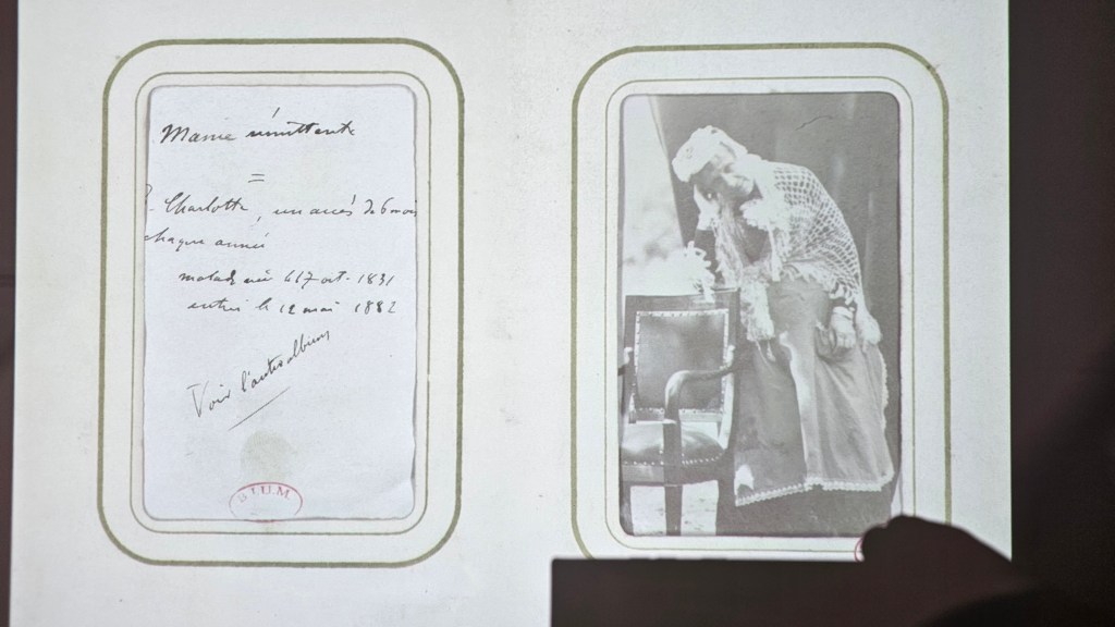 Marianna Scarfone : D’un point de vue historique, en effet, Alice Aigrain et moi, nous avons mis à disposition soit des connaissances et des recherches que chacune d’entre nous avait faites au préalable, soit des fonds découverts à fur et à mesure. On peut citer les fonds Déjerine et Bourneville sur lesquels Alice Aigrain avait déjà travaillé pour sa thèse, et dans mon cas, par exemple, j’ai repéré un fonds que je cherchais depuis longtemps, un album de Marcelin Cayré. Il s’agit du premier aliéniste photographe dans le contexte français, qui peut être mis en parallèle avec Hugh Welsh Diamond, qui a été le premier à avoir utilisé la photo dans un asile anglais. L’album de Cayré, avec des portraits de patients de l’asile de Rodez, qui date de 1861-62, est en plus présenté à une séance de la Société Médico-Psychologique en 1863, où démarre le débat autour des usages plus ou moins pertinents de la photographie en contexte psychiatrique, qui ne sera par la suite tellement développé dans les écrits, mais dont on trouve des traces dans les échanges entre aliénistes. Si d’un côté, ces derniers relèvent l’utilité scientifique des clichés de patients, dans des buts diagnostiques et d’enseignement, de l’autre signalaient le danger que la publication des photographies pouvait représenter, notamment pour l’image publique de certains patients des classes aisées.