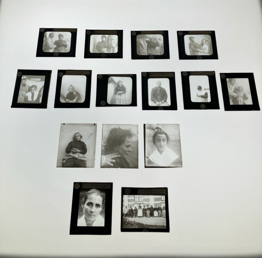 Au-delà de ça, les images pouvaient avoir aussi une fonction d’identification des patients hospitalisés, telles que les « photos d’identité » présentes sur la couverture de certains dossiers médicaux, ou encore celles juxtaposées dans des albums asilaires, des grands registres qui collectaient les portraits de tous les patients prises à leur entrée comme, comme c’était le cas dans l’asile de San Servolo à Venise ou de San Niccolò à Sienne, en Italie. Pas présents dans le cadre de l’expo, ces albums de la collectivité asilaire ont pourtant existé et ont traversé différentes époques, témoignant visuellement des transformations de la population de ces « institutions totales ».